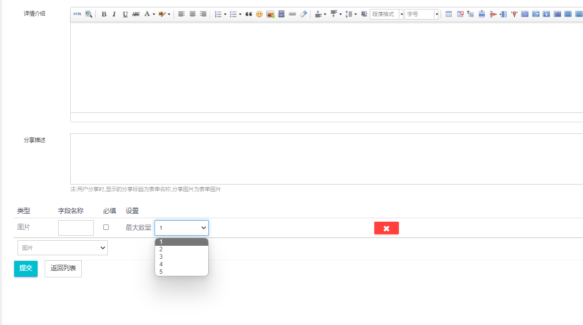 注:用户分享时,显示的分享标题为表单名称,分享图片为表单图片