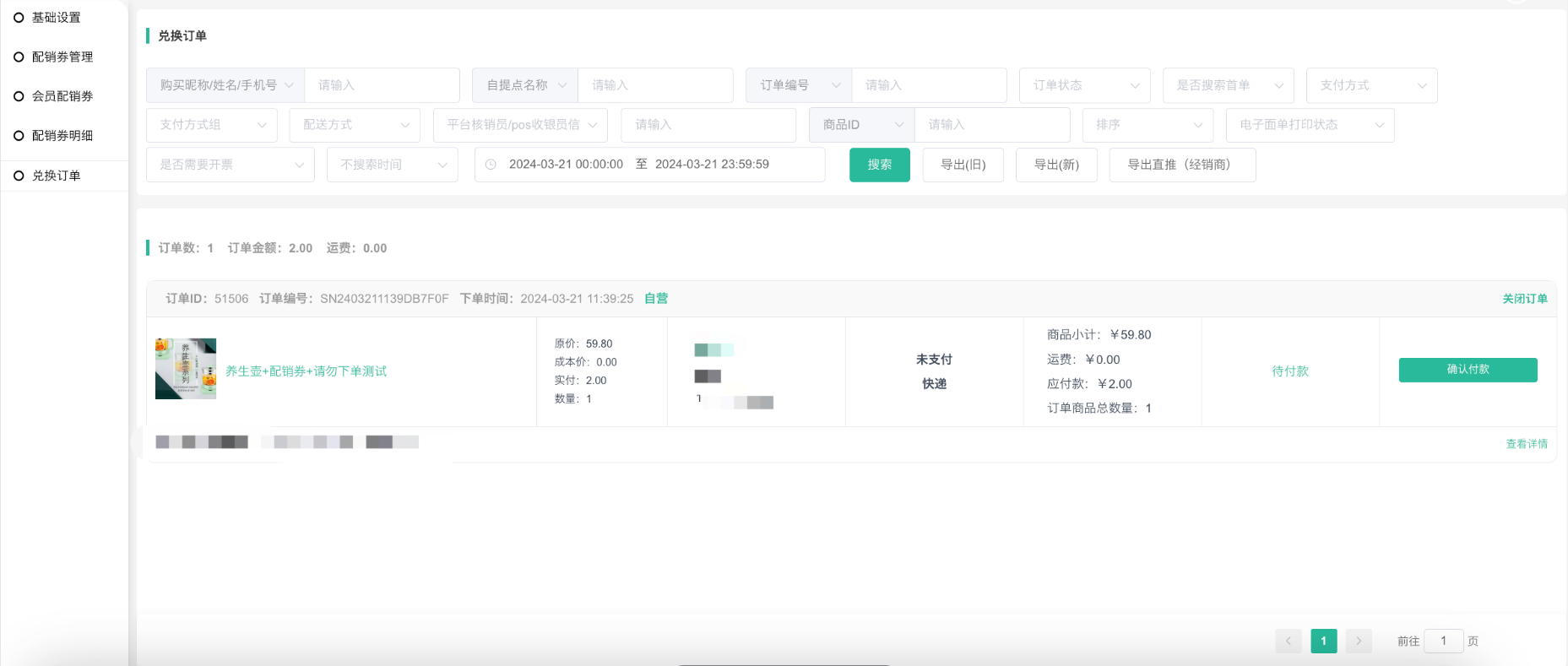 1、显示配销券兑换的订单