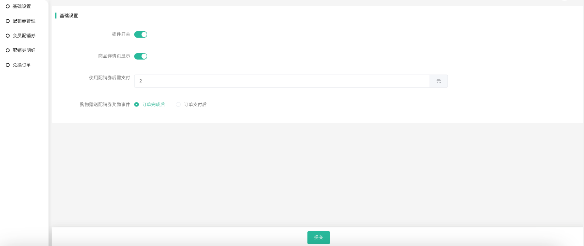1、开启插件,设置使用配销券后还需支付的金额
