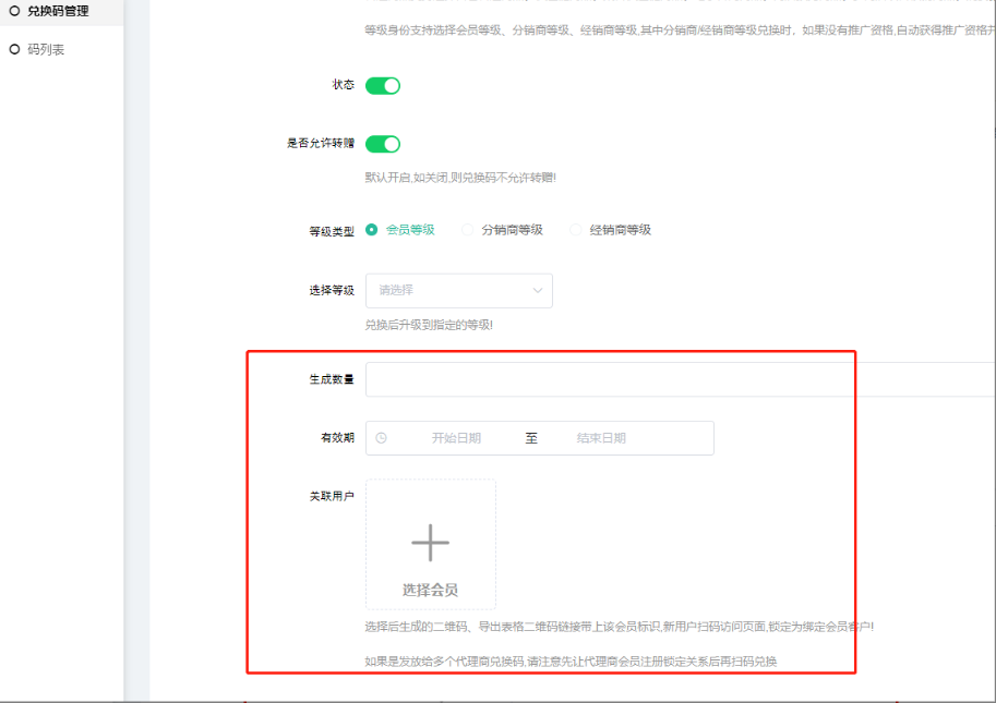 三、兑换码管理